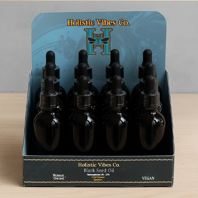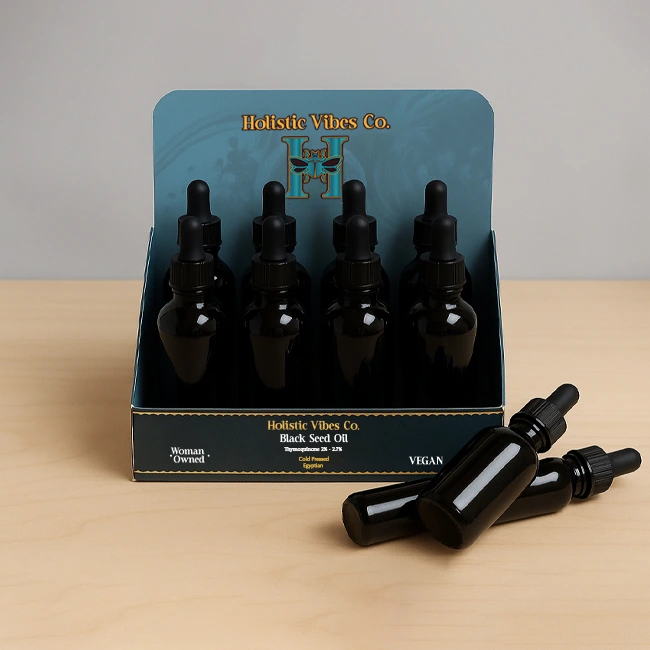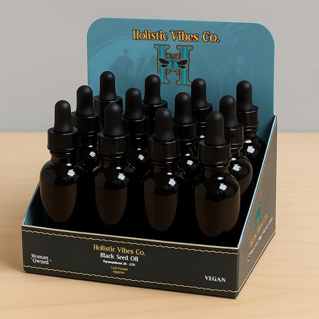 Kasey was looking for display boxes that could hold multiple fragile bottles of seed oil. Since it was our first time working with her, our team tried our best to discuss every detail she wanted for the boxes. To protect multiple bottles of black seed oil, we used thick cardboard to manufacture the boxes, which is an affordable option for high-quality material.