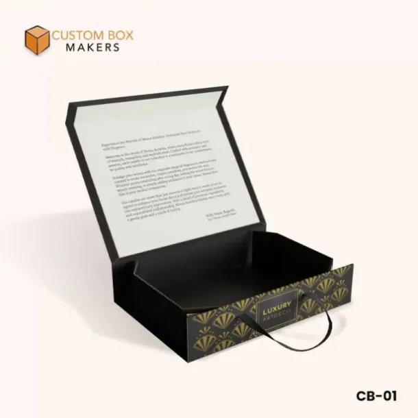 When discussing a seamless unboxing experience, custom drawer rigid boxes are another practical option. These versatile styles of rigid boxes are available at Custom Box Makers to make your packaging journey creative and enjoyable for consumers.