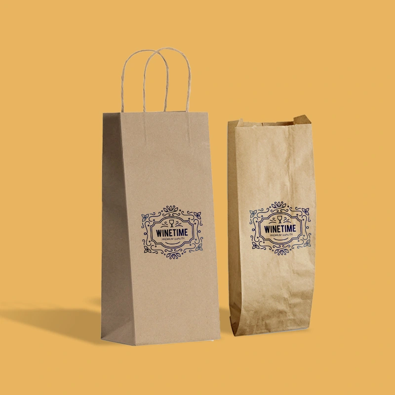 Secure your wine bottles in protective brown paper food bags. Add personalized bag handles to help customers.