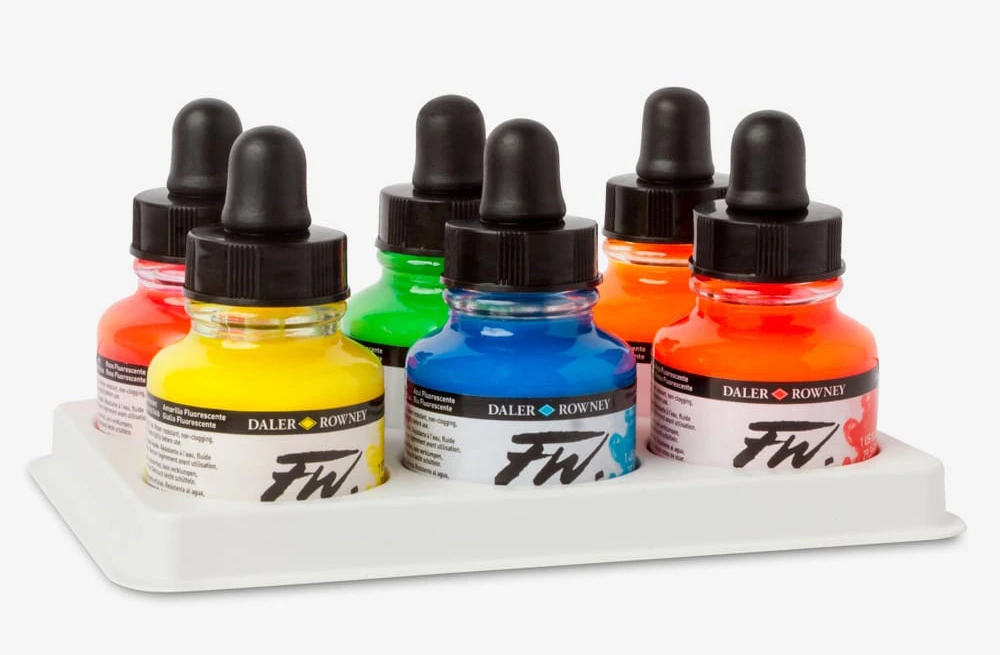 High-visibility inks producing bright, glowing colors, especially in the dark spaces.
