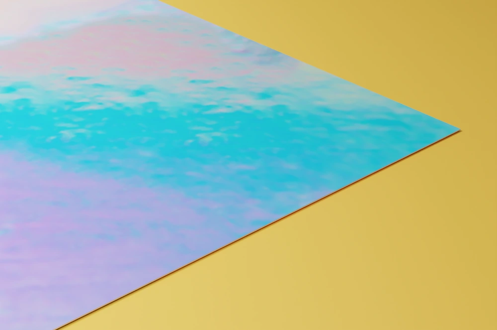 Light-reactive laminated paper creating dynamic color shifts and visual impact.